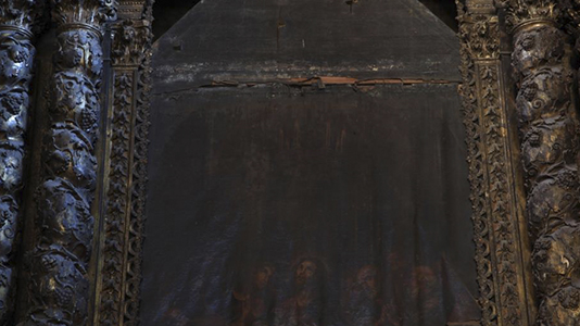 L'ANCIEN VERNIS DEVIENT TRANSPARENT EN REGARDANT DANS LA RÉGION INFRAROUGE PERMETTANT UNE VISUALISATION CLAIRE DE L'OEUVRE D’ART. GRÂCE À L'ABSORPTION SOUS-JACENTE DE DIFFÉRENTS PIGMENTS DANS CETTE RÉGION, LES SOUS-DESSINS DEVIENNENT CLAIREMENT DISTINGUABLES.