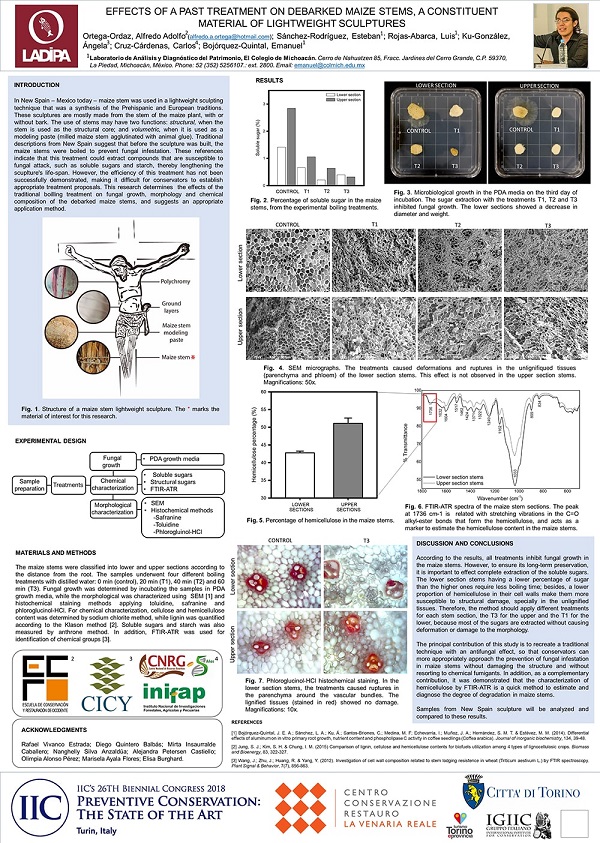 En jugeant les affiches des étudiants, le comité technique et le comité des affiches des étudiants ont été impressionnés par les normes très élevées, rendant le choix difficile. Cependant, le prix Xpectraltek de l'affiche de l'étudiant a été attribué à l'affiche "Effets d'un traitement préparatoire sur des tiges de maïs écorcées, matériel constitutif de sculptures légères en Nouvelle-Espagne", de Alfredo Adolfo Ortega-Ordaz avec ses co-auteurs Esteban Sánchez-Rodríguez Luis Rojas-Abarca, Ángela Ku-González, Carlos Cruz-Cárdenas et Emanuel Bojórquez-Quintal. Le Prix des affiches pour étudiants, parrainé par Xpectraltek, consiste en une contribution de 150 £ pour les études futures du Lauréat et une adhésion à part entière de l'IIC pour 2018-2019. Juger les affiches principales s’est également avéré difficile en raison de la grande qualité des soumissions, mais les comités ont convenu à l’unanimité que l’affiche gagnante était celle d’Ana Martins et de Lee Ann Daffner, qui ont présenté: « Évaluation et optimisation des méthodes de matage et d’encadrement et choix des matériaux pour la présentation et le transit temporaires de photographies et d’œuvres sur papier au moyen d’une approche fondée sur la conception d’expériences ». Le prix de la Grande Affiche, également parrainé par Xpectraltek, consiste en une contribution de 300 £ au développement professionnel du Lauréat et une adhésion individuelle à part entière de l'IIC pour 2018-2019.