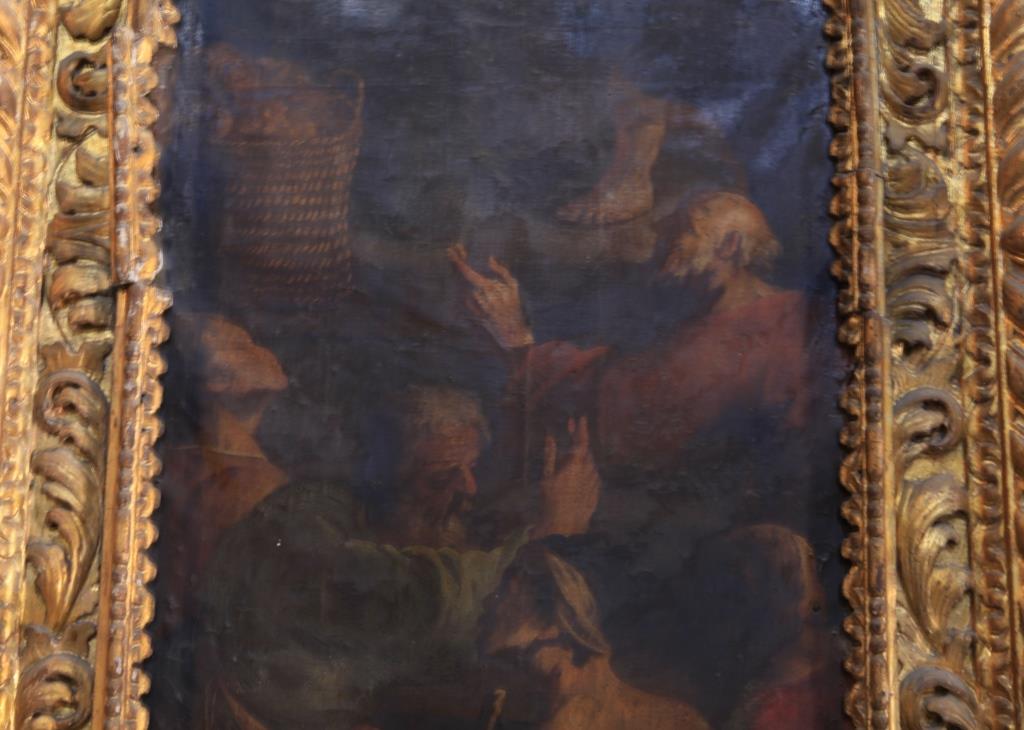 Una tela del 17º secolo- Bento Coelho da Silveira (1617-1708) -che si trova sull’altare principale della chiesa di San Cristoforo (Igreja de São Cristóvão), in Portogallo. Mancava da diversi decenni, ed è stato trovato dietro l’altare principale con una parte significativa irrecuperabile. La tela raffigura “l’ultima cena di Gesù” e si inserisce all’interno di uno scenario più ampio che consiste di tre Magi: l’ultima cena, Le nozze di Cana e di sacrificio di David, che ritraggono la teologia cattolica dell’eucaristia come sacrificio e banchetto.